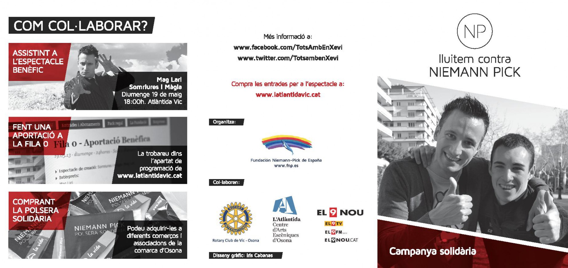 1- Comprant la polsera solidaria Niemann Pick “Una Causa la Vida” per només 1 € i que trobaràs al les Oficines del club “Secretaria”, Al Bar UE Vic de L’estadi Mpal. Vic i al Bar del Camp Mpal. El Rieral de Santa Eulàlia de Riuprimer